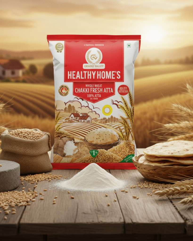 Grains Valley proudly presents its premium range, Healthy Homes Chakki Fresh Atta—stone-ground to preserve natural nutrition and taste. With a strong focus on hygiene, purity, and value for money, Healthy Homes Atta is a trusted choice for health-conscious households seeking soft, wholesome rotis every day.