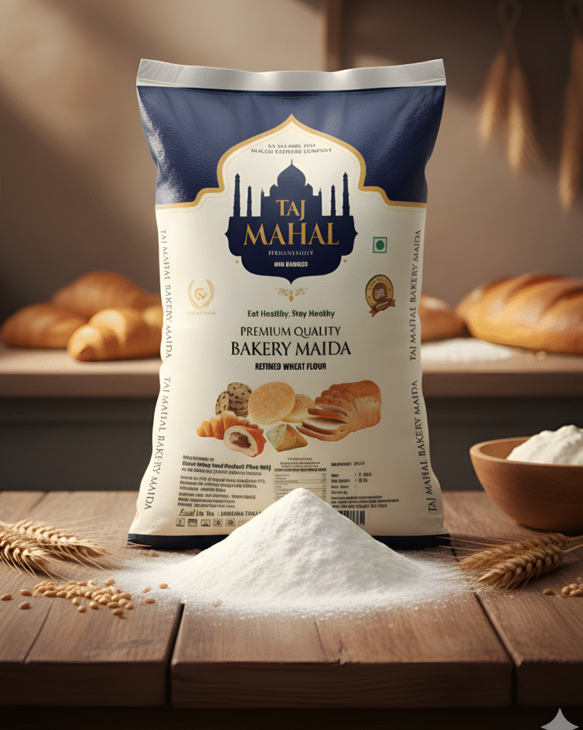 Taj Mahal Premium Bakery Maida , is the most sought-after choice by bakeries and restaurants for making bread, buns, cakes, pizza bases, cookies, sweets, porottas, and more. We also offer specially refined flours such as Bakery Special Maida for baked goods and Poratta Special Maida for soft, flaky porottas.