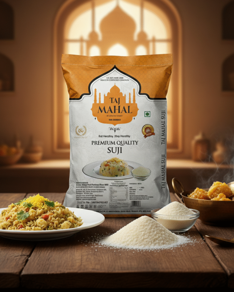 Taj Mahal Suji by Grains Valley is a premium-quality semolina used in a variety of dishes—from crispy dosas and upma to halwa and other traditional sweets. Known for its perfect granulation and purity, our Suji enhances both taste and texture in every recipe, making it a kitchen essential for homes and commercial kitchens alike.